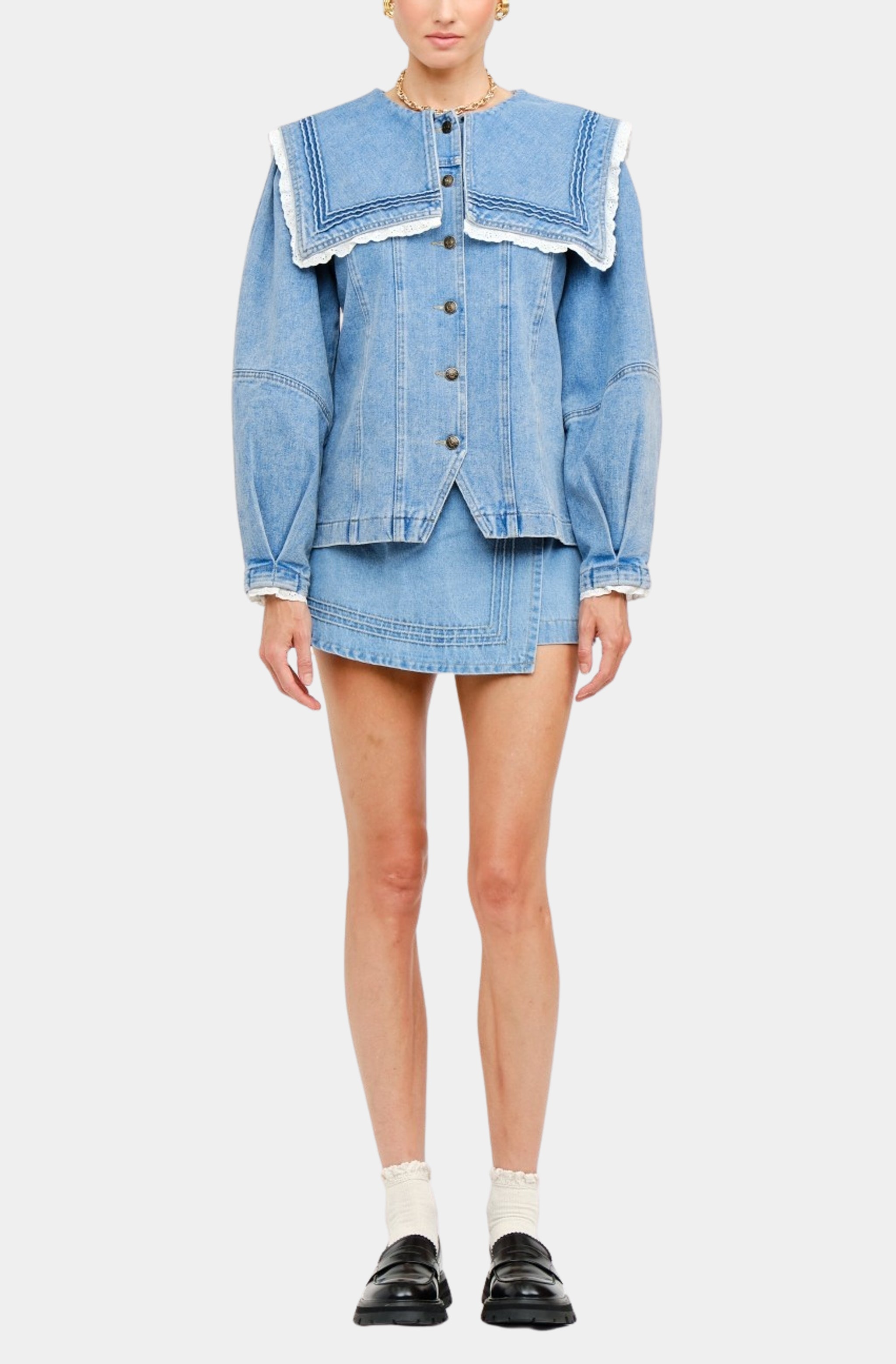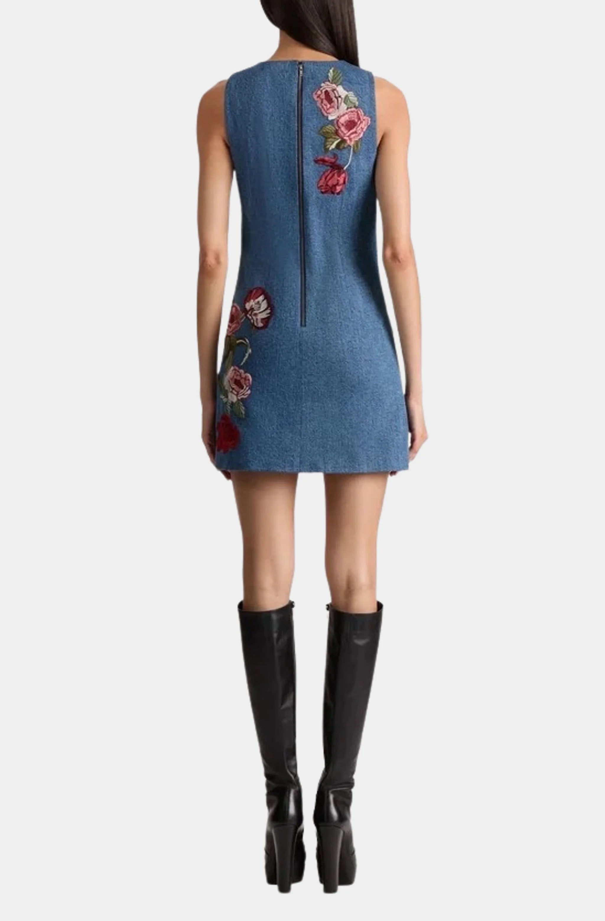 Cade Embroidered Sleeveless Shift Denim Mini Dress