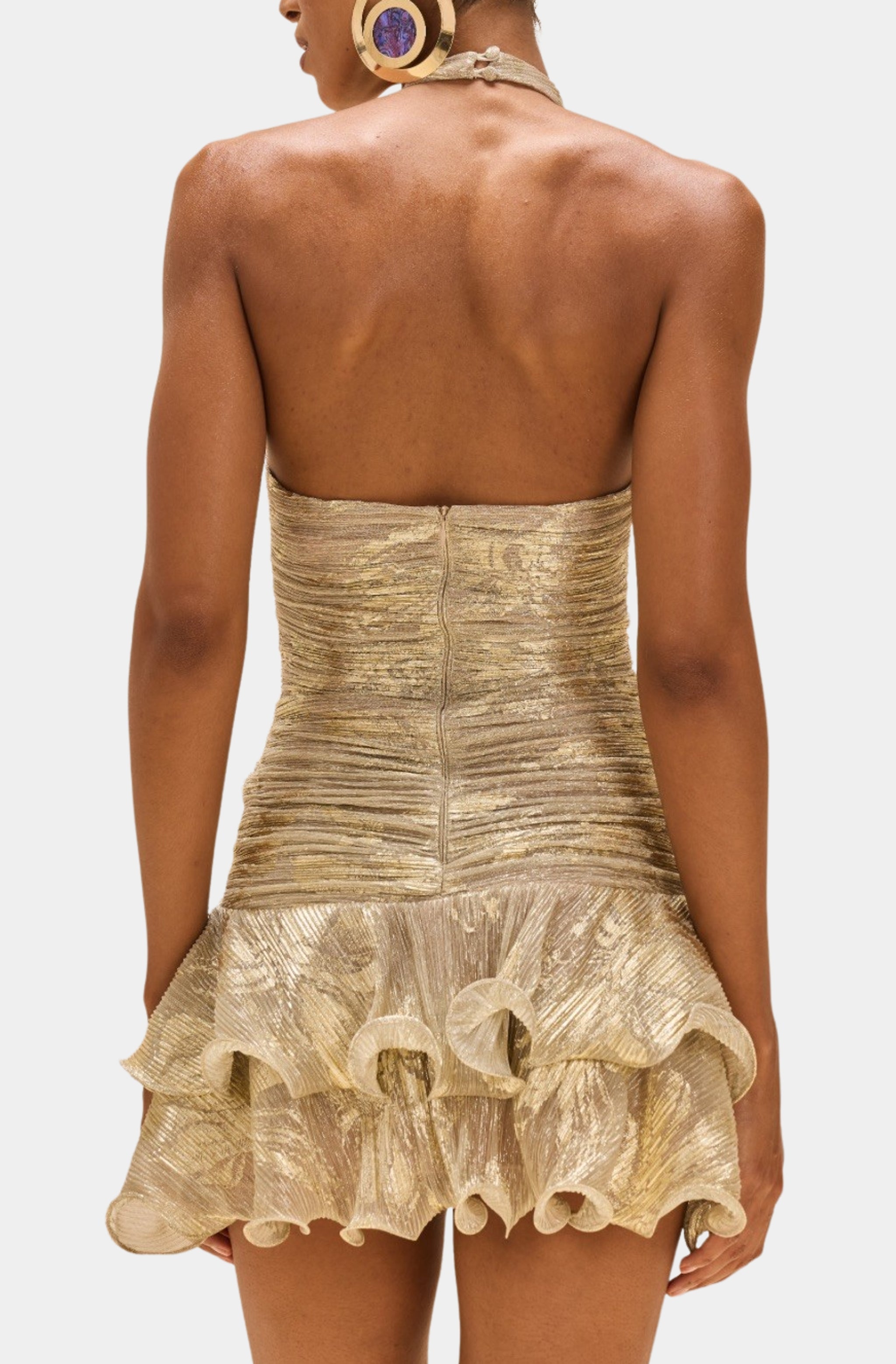 PatBO Golden Dust Lurex Plunge Mini Dress
