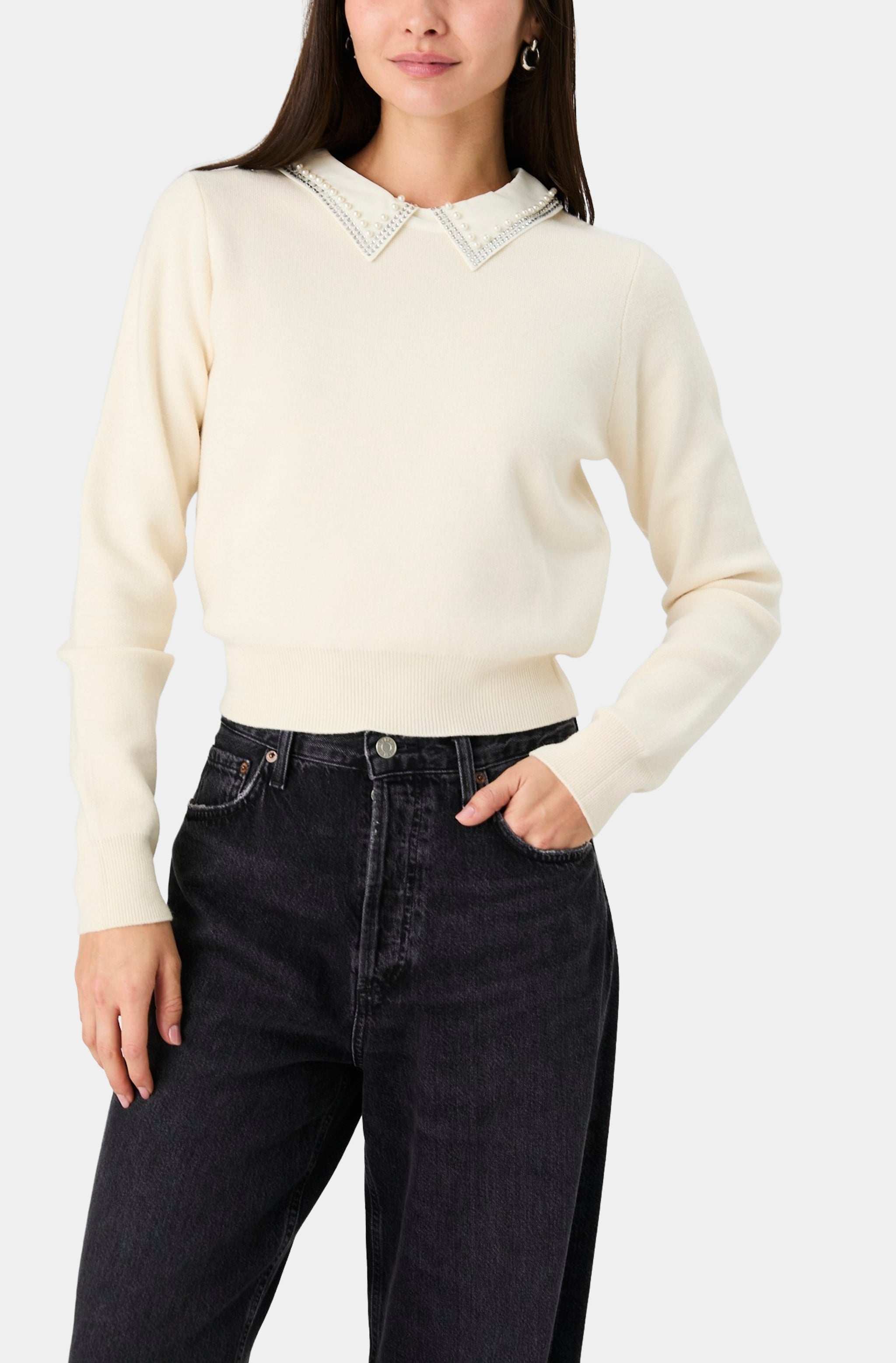 Avea Knit Embellished Collar Sweater