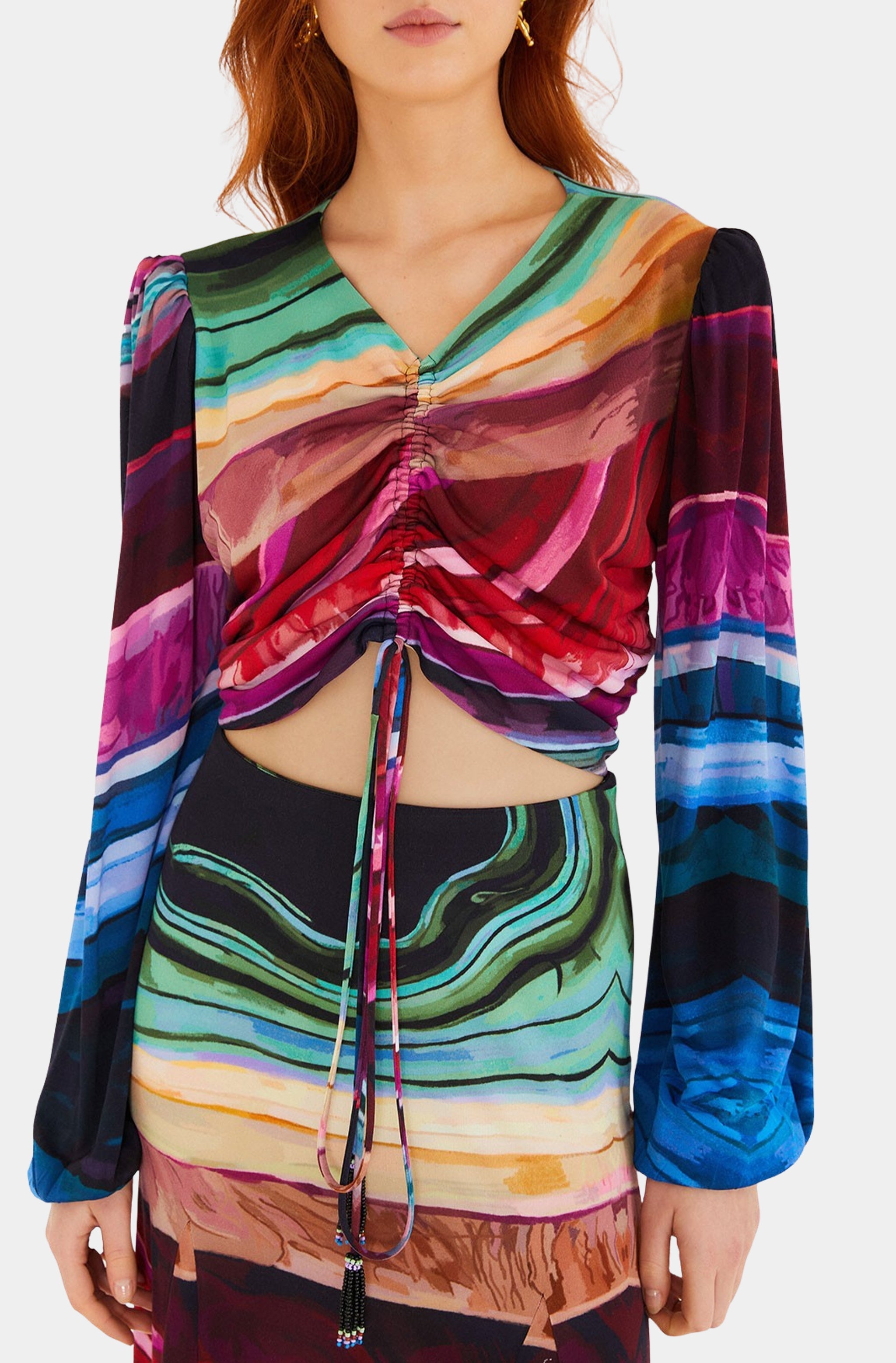 Farm Rio Precious Gems Multicolor Long Sleeve Top