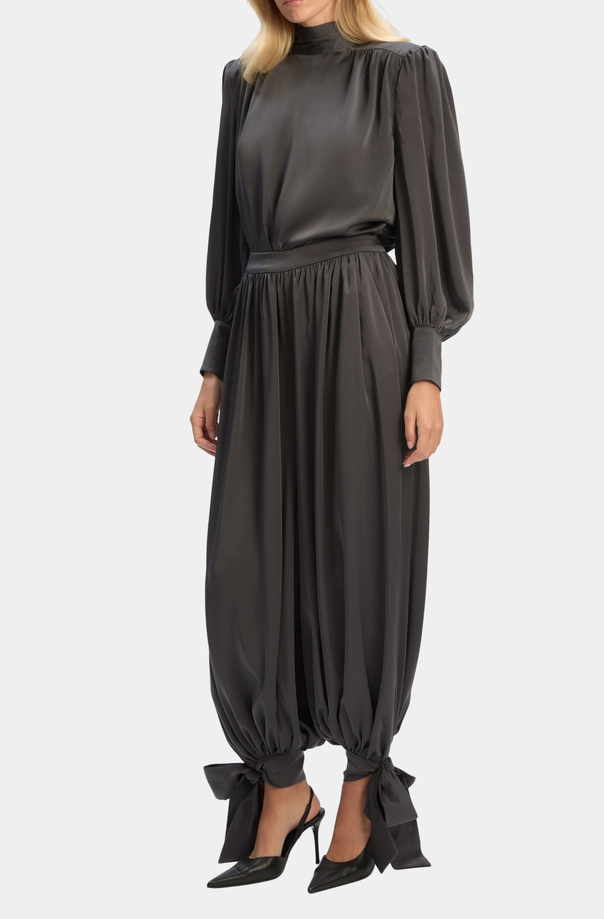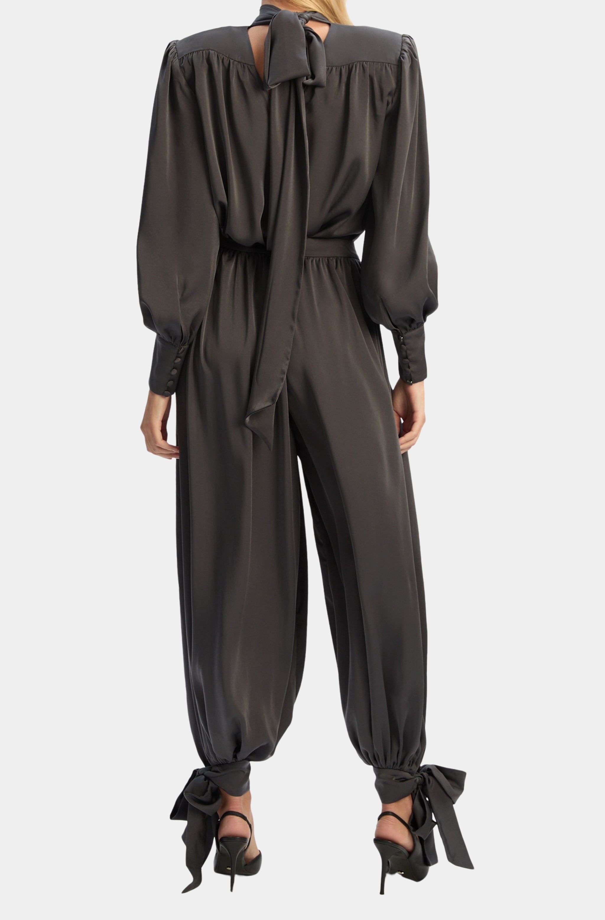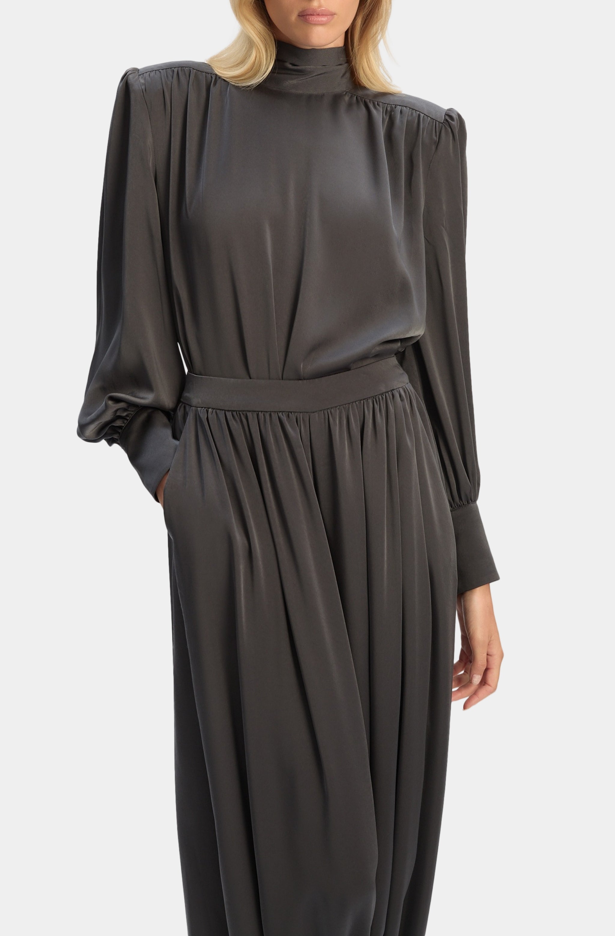 Revana Satin Tie Neck Blouse
